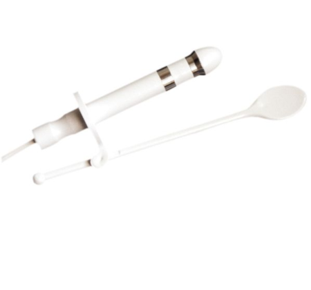 La posición lateral baja de los electrodos grandes facilita el trabajo muscular y mejora la comodidad de estimulación. El collar de sujeción asegura que la sonda se mantenga a la profundidad de penetración óptima. La desconexión de los cables permite que la sonda se sumerja completamente en un baño desinfectante. INVIMA 2015EBC-0012979